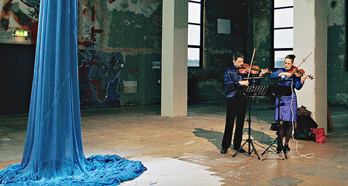 Konsert på oväntad plats med Duo Gelland, en dansare, en performanceartist, två skådespelare, en forskare och en smyckeskonstnär. Det var höjdpunkten i projektet Sinfonia per due violini.