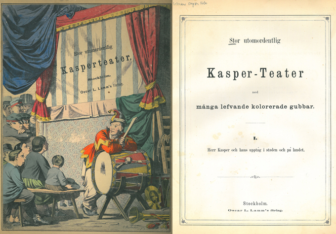 Pärm och titelsida ur Kasper-Teater, Stockholm 1866.