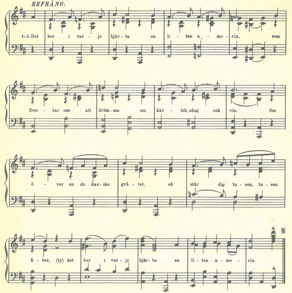 Det bor i varje hjärta en liten amorin heter foxtrotvisan som Alfhild ”Bullan” Weijden (1901–1969)sjöng i Ernst Rolfs jubileumsrevy 1928. Bullan sjöng, svävandes över parketten i ett självlysande hjärta. Revykupletten av George Enders (1898–1954) ingick i Ernst Rolfs Jubileumsrevy på Cirkus i Stockholm 1928.