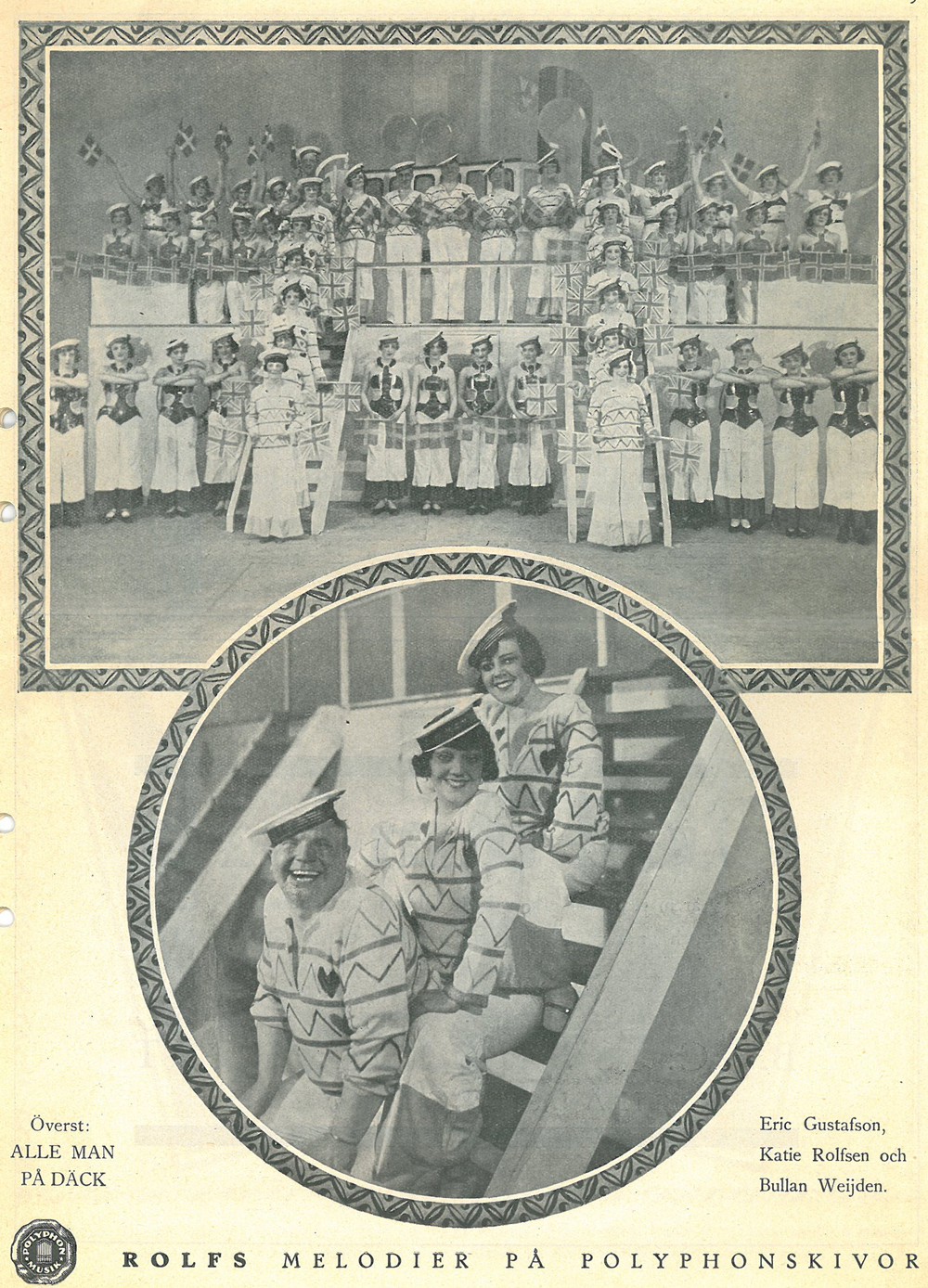 Revyn bestod av 36 olika tablåer och spelades av en ensemble på totalt 96 personer. Inledningen måste förstås vara anslående och storstilad, så Ernst Rolf hade byggt upp en sjömanstablå där 48 svenska, danska, norska och engelska paraderade, sjöng och dansade en semaforeringsdans.