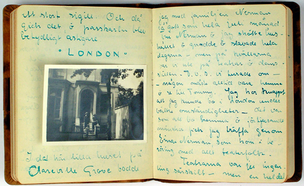 Sedan går färden vidare mot London, men teaterlivet där imponerade inte på henne :"Teatrarna var ju ingenting särskilt – men en hel del riktigt förtjusande saker såg jag ändå, t.ex The Beggar's Opera. Aldrig visste jag att operette kunde vara vackert, men sällan har jag sett något sådant som detta. Tons of Money, Shall we join the ladies, The man in dress clothes var alla roliga saker, men vad som var något att minnas och tycka om så var det Barries Dear Brutus. Jag skulle vilja säga att det var som en vacker saga i modern tid".